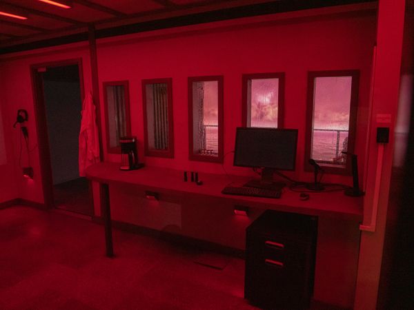 The main control room and view of the impending storm. [Picture Credit to Logan Smith.]
