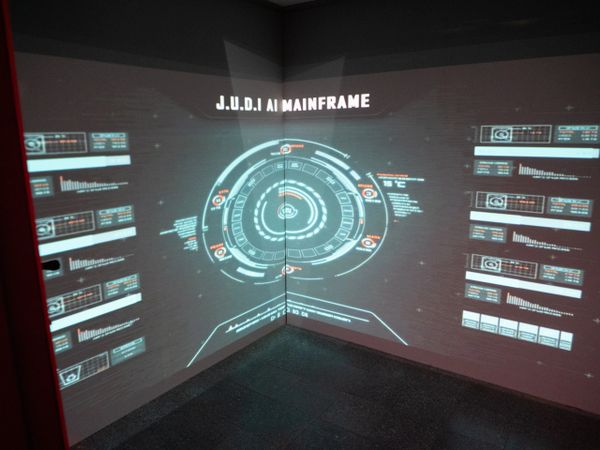The VR projection room with the beginning of Puzzle 6. [Picture Credit to Logan Smith.]