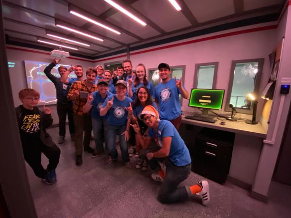 A portion of our class and crew smiling because our Escape Room open house event was a HUGE success! Thanks to everyone who made this experience possible - especially J.E., Chris, Karen, Sven, and any other instructors who guided us along the way.